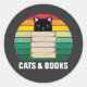 Pegatina Redonda me encantan los gatos y los libros, los gatos y lo