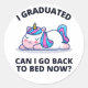 Pegatina Redonda Me gradué, puedo volver a la cama ahora