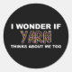 Pegatina Redonda Me Pregunto Si Yarn Piensa En Mí También.