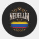 Pegatina Redonda MedellãN Con Bandera De Colombia