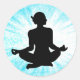 Pegatina Redonda Mediación Zen Mujer Negra y Azul Sunburst