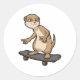 Pegatina Redonda Meerkat como Skater con Skateboard