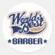 Dale a un amigo, familiar o compañero de trabajo este gracioso regalo de Worlds Best Barber o un obsequio de medias. Logo de estilo deportivo en marina y bronceado para tu Barber favorito. ¡Que sepan que creen que hacen un gran trabajo en su profesión!
