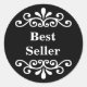 Mejor Vendedor en Pegatina blanco y negro. El texto se puede personalizar.