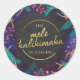 Mele Kalikimaka - Feliz Navidad en Hawaiian Moderno, modernos botánicos de invierno con mirada verde, azul, violeta y dorada al borde de estos hermosos stickers de Navidad, perfecto para etiquetar regalos o sobres de tu familia.