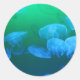 Fotografía atmosférica de medusas transparentes nadando en un mar azul / verde.