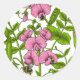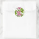 Pegatina Redonda Melocotones y abejorros, rosa, verde y blanco