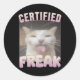 Pegatina Redonda Meme de gato Freak Funny Certificado