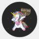 Pegatina Redonda Menorah Unicorn Jewnicorn Hanukkah Pajamas
