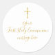Pegatina Redonda Mensaje de Primera Comunión Simple Cruz de Oro