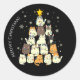Pegatina Redonda Meowy Christmas Merry Cat Tree