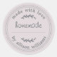 Rústicos productos caseros hechos a la plancha o pegatina de mermelada con el texto casero, hecho con amor y tu nombre en la tipografía moderna en un fondo púrpura pastel. Simplemente agregue su nombre a la etiqueta. Puede escribir los nombres de los productos en los pegatinas cuando se fabrican los productos. Diseñado exclusivamente para usted por Happy Dolphin Studio. Si necesita ayuda o productos coincidentes, por favor contáctenos en happydolphinstudio@outlook.com.