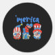 Pegatina Redonda Merica Gnomes Estados Unidos Bandera Fuegos artifi