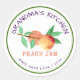 Una etiqueta personalizada de mermelada de melocotón "La cocina de la abuela... hecha con amor".