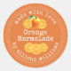 Pegatina rústica, simple y moderna para conservas de mermelada casera con el texto hecha con amor, mermelada de naranja y tu nombre en tipografía moderna blanca sobre un fondo naranja brillante con un toque elegante de acuarela naranja y rodaja de naranja. Simplemente añade el nombre de tu negocio y el nombre del producto a la etiqueta. Diseñado exclusivamente para ti por Happy Dolphin Studio. Si necesitas ayuda o productos coincidentes, por favor contáctanos a través del chat de nuestra tienda.