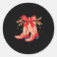 Pegatina Redonda Merry And Bright Cowgirl Boot Christmas Western Co