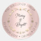 Pegatina Redonda Merry Bright Family Address Wreath Gold Rosa