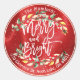 Pegatina Redonda Merry Bright Merry Christmas Holly Floral Direcció