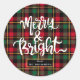 Pegatina Redonda Merry Christmas Buffalo Plaid