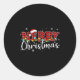 Pegatina Redonda Merry Christmas Buffalo Plaid Red Santa Family Xma