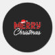 Pegatina Redonda Merry Christmas Buffalo Plaid Red Santa Hat