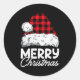 Pegatina Redonda Merry Christmas Buffalo Plaid Red Santa Hat Xmas P