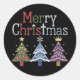 Pegatina Redonda Merry Christmas Cross Xmas Tree Retro