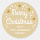 Pegatina Redonda Merry Christmas Custom Name Simple Gold