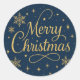 Pegatina Redonda Merry Christmas Gold Snowflakes
