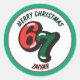 Pegatina Redonda Merry Christmas Green Numbers 6 & 7 Custom Name