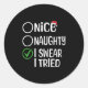Pegatina Redonda Merry Christmas Nice Naughty I Swear I Tried Xmas