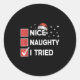 Pegatina Redonda Merry Christmas Nice Naughty I Tried Christmas Lis