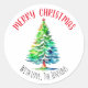 Bonito acuarela Árbol de Navidad pegatinas de vacaciones personalizados. Te deseo una Feliz Navidad/