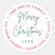 Las etiquetas de las direcciones de retorno de vacaciones de invierno con el texto "Feliz Navidad" y un año personalizado con un tipo de letra verde, escrito a mano, y tu nombre y dirección de retorno en rojo. Fondo blanco. Todos los colores son personalizable.