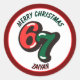 Pegatina Redonda Merry Christmas Red Numbers 6 & 7 Custom Name