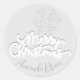 Pegatina Redonda Merry Christmas Script Name Gray Snowflakes White