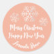 Pegatina Redonda Merry Christmas Script Name Snowflake Gray Peach