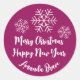 Pegatina Redonda Merry Christmas Script Name Snowflake Gray Pink
