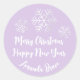 Pegatina Redonda Merry Christmas Script Name Snowflake Gray Purple