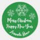 Pegatina Redonda Merry Christmas Script Name Snowflake Grey Green
