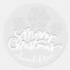 Pegatina Redonda Merry Christmas Script Name Snowflakes White Gray
