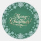 Pegatina Redonda Merry Christmas Snowflakes Green