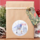 Pegatina Redonda Merry Christmas Snowy Mountain Sceners Skiers