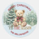 Pegatina Redonda Merry Christmas Teddy Bear Snow Scene Name