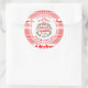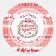 Personalizable Feliz Navidad con el tradicional pegatina gráfico vintage circular. Su nombre y mensaje sobre el hermoso patrón de estilo de Laponia en color rojo y blanco. Navidades personalizados de juego Papel servilleta, placa de papel y más... Hay otro modelo disponible.