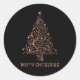 Pegatina Redonda Merry Christmas Tree Black Metallic Brown Copper