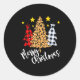 Pegatina Redonda Merry Christmas Tree Buffalo Plaid Red Green Xmas