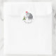 Este divertido Pegatina de la Ronda Clásica presenta al personalizado ilustracion del hermoso Mamut con un Sombrero de Santa y decorando el Árbol de Navidad. La suave nevada agrega más espíritu Navidad.