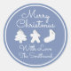 Pegatina Redonda Merry Christmas Tree Name Blue White Fraude