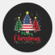 Pegatina Redonda Merry Christmas Tree Plaid Us Flag Snowflake Xmas